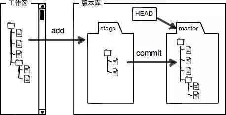本地版本库里存了很多东西,其中最重要的就是称为 stage(或者叫 index)的暂存区,还有Git为我们自动创建的第一个分支master,以及指向master的一个指针叫HEAD。