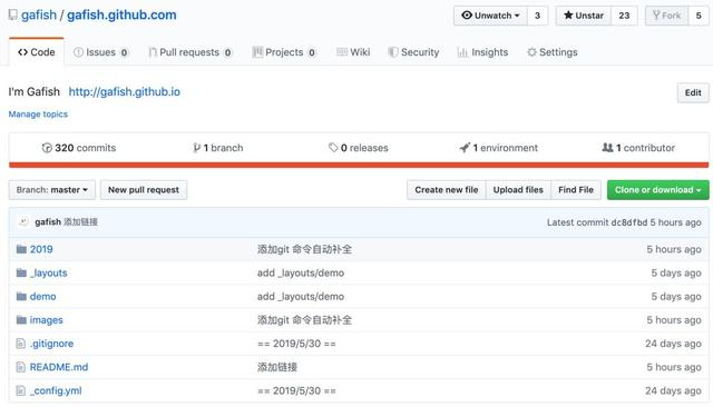 代码下载完成后在当前文件夹中会有一个 gafish.github.com的目录,通过cd gafish.github.com命令进入目录。